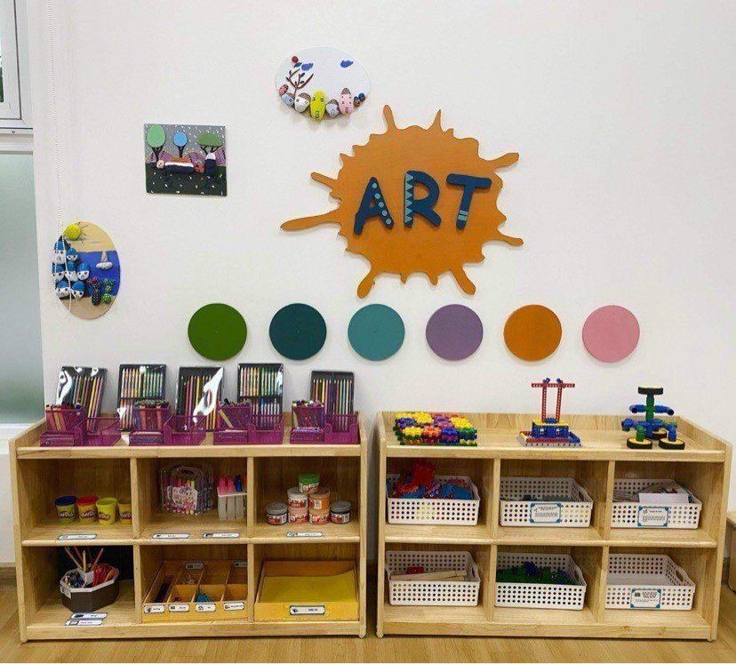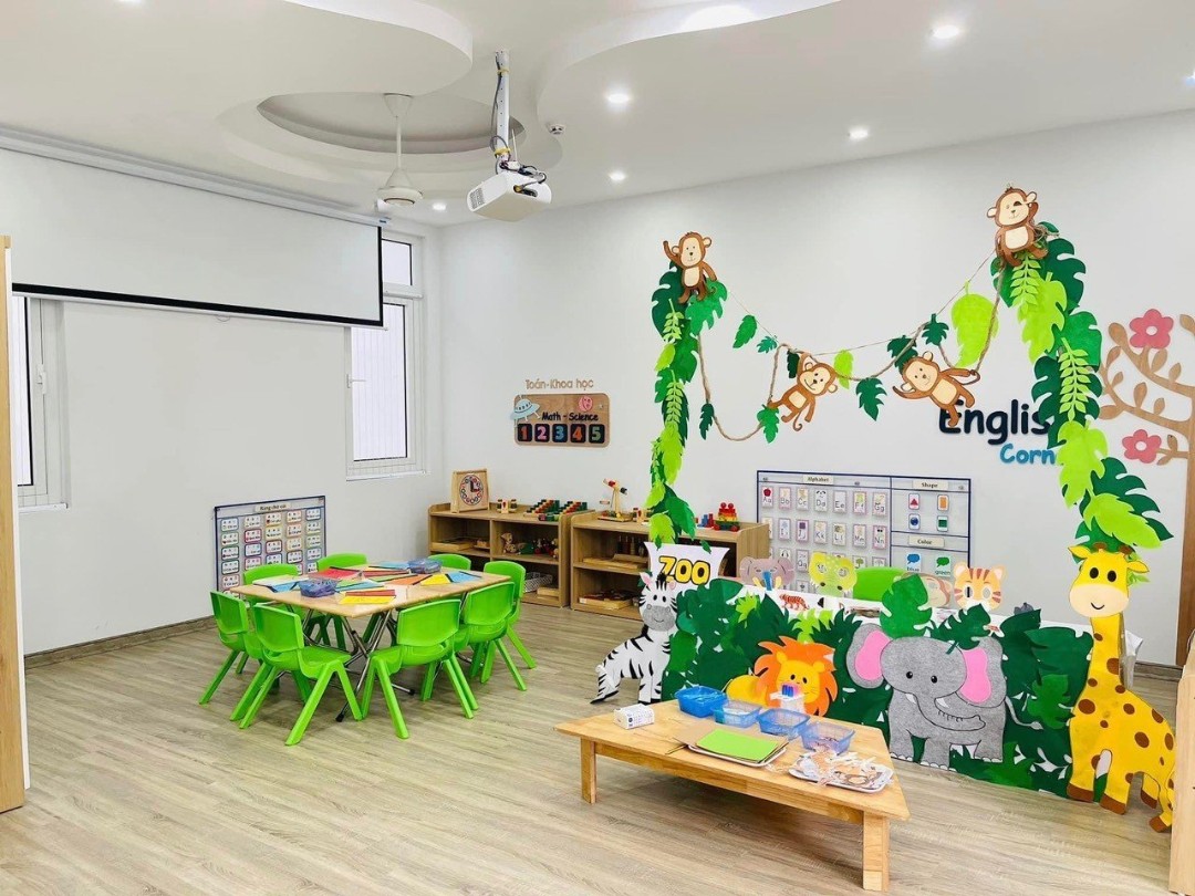 2. Lớp học set up hiện đại với 6 lĩnh vực học tập, nhà trường trang bị máy chiếu tại mỗi lớp học, giúp bẻ thoả sức học tập và vui chơi, ngoài các lớp học trong phòng còn có các lớp học ngoài trời với nhiều hoạt động thể dục thể thao, giúp bé phát triển đồng đều.